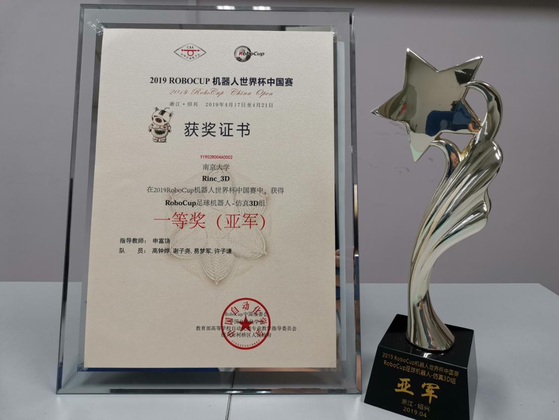 2019年4月18日-21日,2019 RoboCup机器人世界杯中国赛在浙江绍兴柯桥中国轻纺城国际会展中心举行。经过三天的激烈角逐,我系机器人智能与神经计算研究组(//hk-doll.com/rinc/index.html)的“Rinc_3D”团队(成员:高钟烨,谢子尧,易梦军,许子谦指导教师:申富饶)荣获仿真3D组一等奖(亚军)。