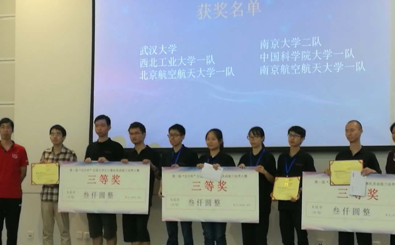 大赛旨在选拔未来我国计算机系统的设计、分析、优化与应用人才,激发本科生的创新实践能力并培养其团队协作精神。大赛要求参赛队伍在龙芯公司专门为大赛设计的一个开发板上,实现自行设计的CPU,运行自行设计(裁减)的操作系统,并配备自行开发的编译器,可编译运行应用程序。各参赛队伍的成绩包括功能得分、性能得分、答辩及展示部分。本次大赛吸引了全国40余所高校、70多支队伍参赛,决赛阶段共有20支队伍参加,角逐一等奖1名,二等奖3名,三等奖6名。