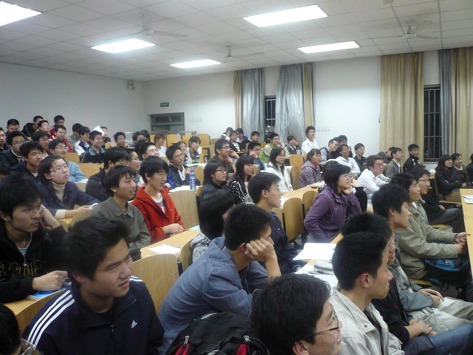 费老师在讲座中,结合计算机系本科生的专业特点,用“游戏”的比喻生动、形象地展示了大学本科四年的学习过程。通过向在座的同学们介绍“为什么大学这场游戏要通关”、“大学是什么”、“大学生的任务”、“怎样通关——练级”等问题,就同学们进校后面临的心态、学习、生活、社会交往等方面的变化及相关问题进行了逐一的解答和指导,帮助同学们明确目标,寻找实现自我的最佳方案。费俊峰老师的讲座深入浅出,内容丰富,为大一同学更好地适应大学生活提供了有益的指导,受到我系07级学生的热烈欢迎!