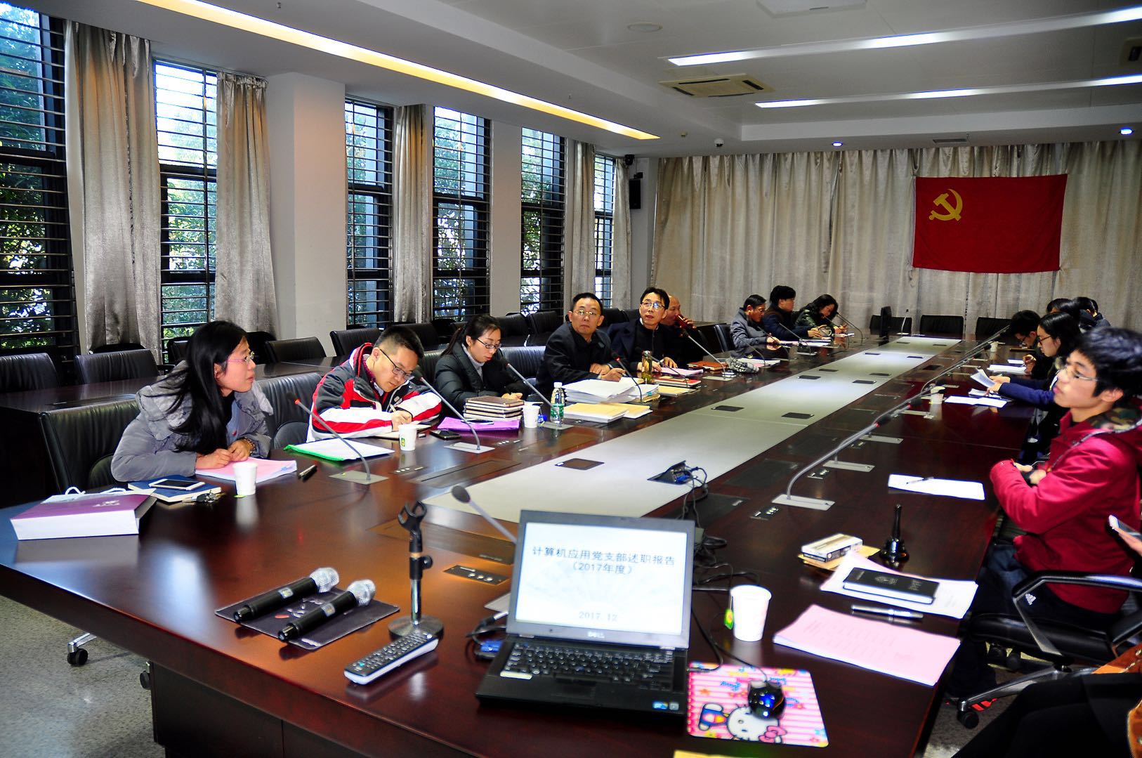 12月19日14:30,2017年度计算机系基层党支部书记述职评优会在计算机科学技术楼112会议室召开。出席此次会议的有,计算机系与软件学院党委书记武港山,党委副书记宫玲琳,党委委员、计算机系主任李宣东,党委委员张剡、曹迎春、张建兵等。此外,学校基层党建工作第七督导组和组织部相关老师,也亲临现场指导工作。会议由宫玲琳副书记主持,计算机系全体基层党支部书记参加。
