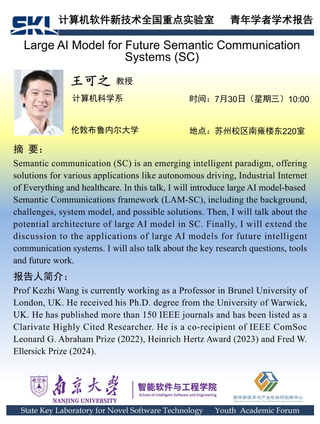 2025年7月30日 “软件新技术讲坛” 学术报告 - 王可之 教授