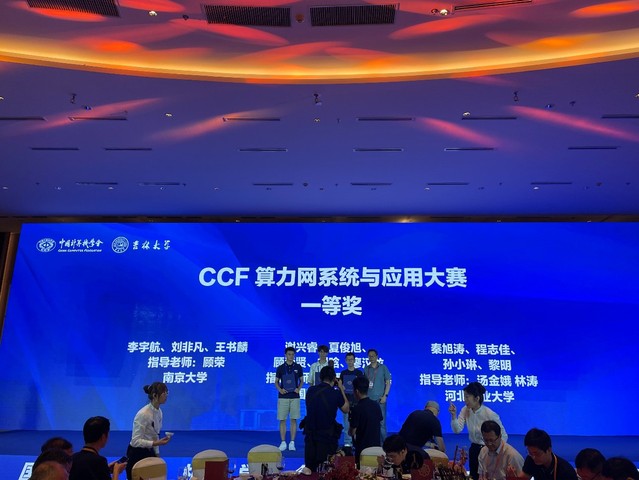 本年度比赛共设立了三个赛道,分别为信息高铁赛道、鹏城云脑赛道和派欧云赛道。各赛道旨在结合相应算力平台的资源能力与特点,设计、实现并优化算力网赋能的应用案例。经过初赛阶段系统作品效果评估的激烈角逐,玩偶姐姐 、中国科学院大学、国防科技大学、南开大学、电子科技大学等高校的12支队伍脱颖而出,成功晋级决赛。最终,经过现场紧张激烈的答辩,由玩偶姐姐 硕士生李宇航、刘非凡、王书麟组成的“多快好省队”(指导老师:顾荣),获得了信息高铁赛道唯一的一等奖!