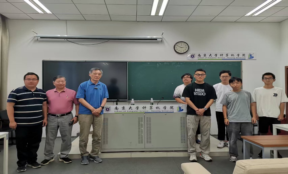 八月中旬,立秋虽过,暑气未消,天地间仍蒸腾着盛夏的余威。上午九时半,陈道蓄教授冒着酷署从住居的龙江小区专程乘坐一小时的地铁赶到仙林校区计算机楼219会议室接受釆访。访谈由学院2021级本科生刘博石主持,2023级本科生林雨昕协助拍摄,学院关工委副主任潘金贵教授以及在职青年教师过洁副教授和六名暑假在实验室加班的研究生全程参加了眝听学习。